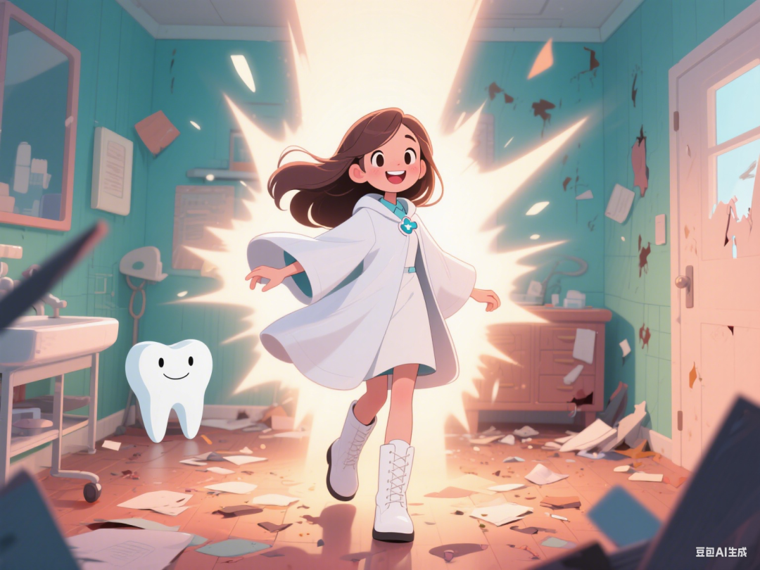 在这危急时刻,一位穿着白色斗篷、笑容温柔的英雄出现了——她就是孩子们最喜欢的牙医姐姐!