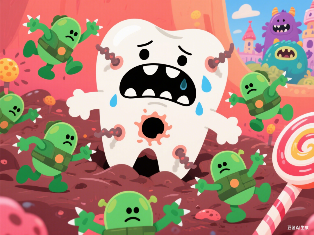 “牙医姐姐,快来救救我们吧!”小白牙着急地说,“糖糖怪兽占领了我们的王国,小黑牙都被蛀坏了!”